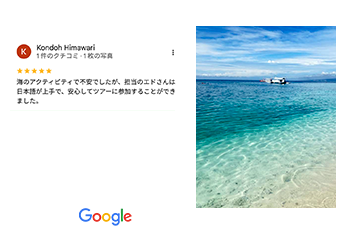 Google Map口コミ総数600件以上!サービスと品質が高いタビセブは、セブの旅行会社で1番の口コミ総数を誇ります。口コミを参考に旅行を検討される方に、タビセブで通して安心してご参加ください。掲載実績